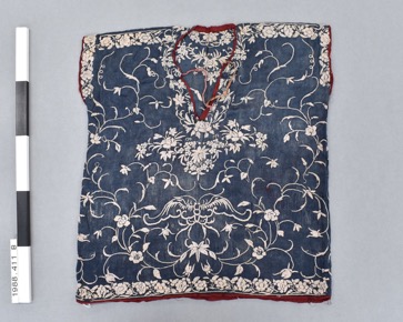 Wide white cotton shirt, with embroidered neck edging in bl…