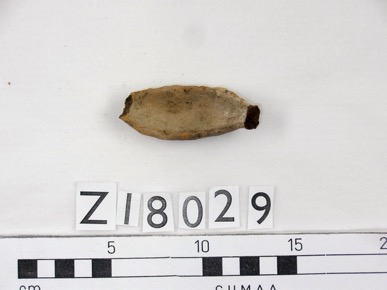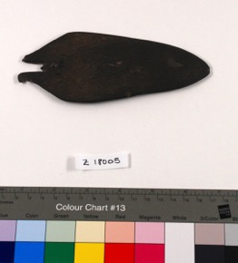 Rough miniature boat-shaped dish, with one end broken.