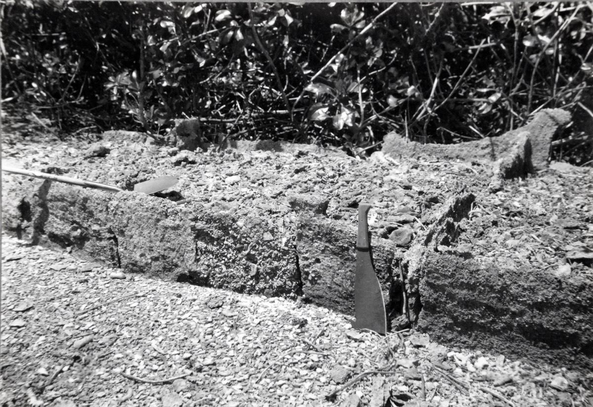 On Catalogue Card: Site A. Facing north side of raised portion and slabs dividing first and second sections. Sydney Island. Phoenix group