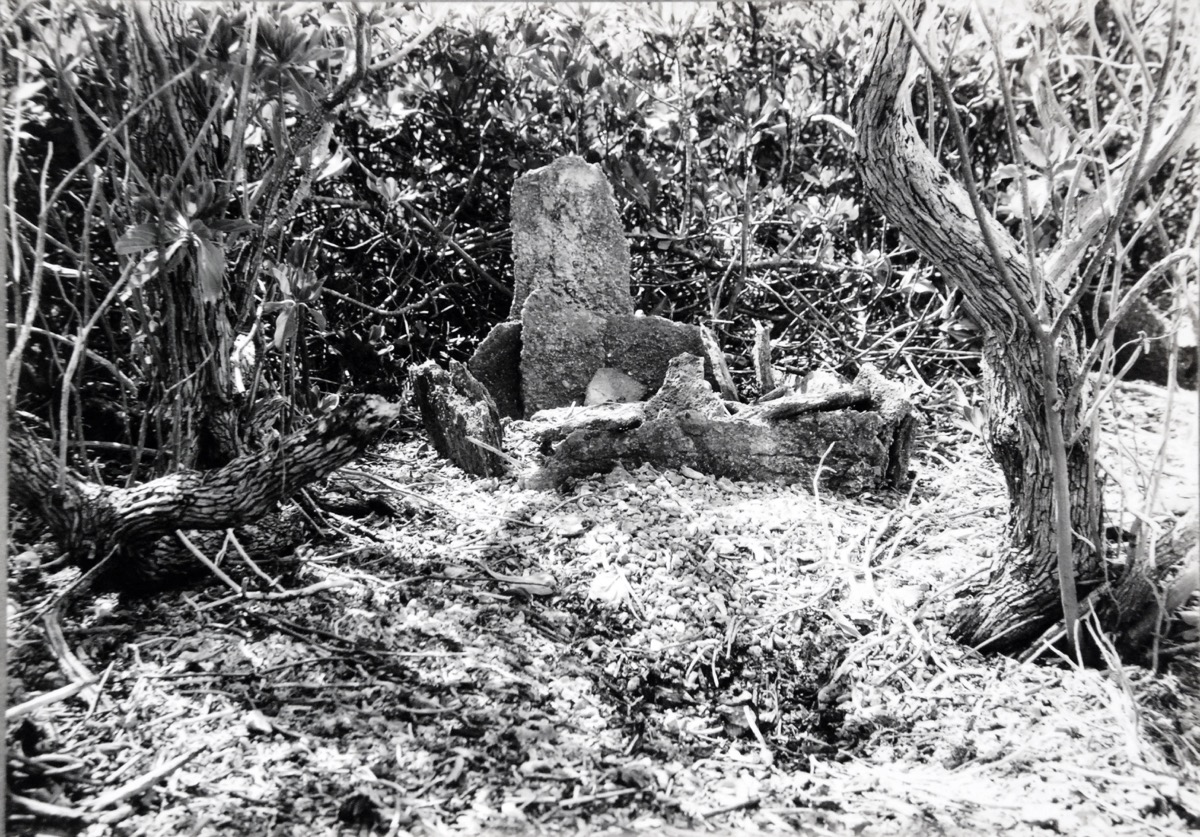 On Catalogue Card: Site D. Small shrine with monolith on north side, seen from south. Sydney Island. Phoenix group
