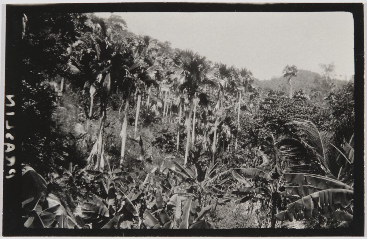 "Praslin Island, Seychelles Islands. Grove of the Double coconut palms. (Coco de mer). Praslin - 1926." [Hornell's annotation]