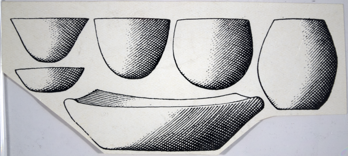 Photomechanical reproduction of Illustrations of 6 x clay bowls. [GB 11/07/2000]