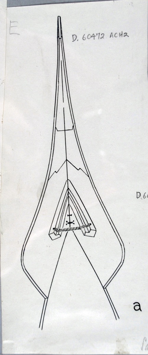 Drawing of the bow or stern of a canoe.