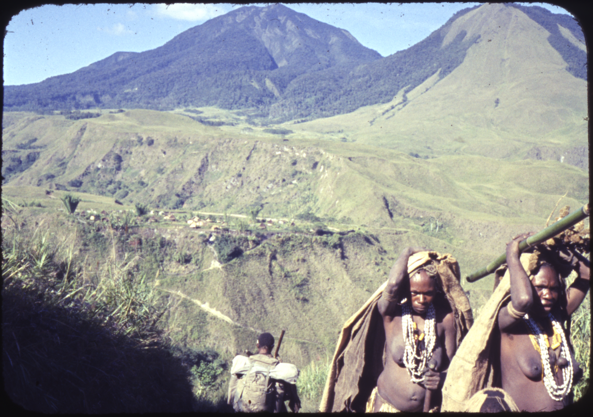 Facebook: Image published on PNG, Photo History, Taim Bipo group on the 23/7/2022, with the caption: "Climbing the path near Marawaka, Eastern Highlands, 1968 (censored). Photo by Alan Macfarlane, University of Cambridge."