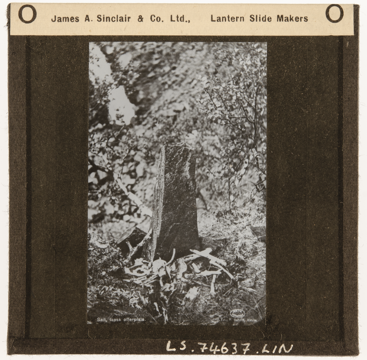 This lantern slide was in the box formerly numbered 17 which contains Lindgren lantern slides, prints and negatives. It has now been numbered C52/. The small box from which this lantern slide comes has been marked C52/18/.
