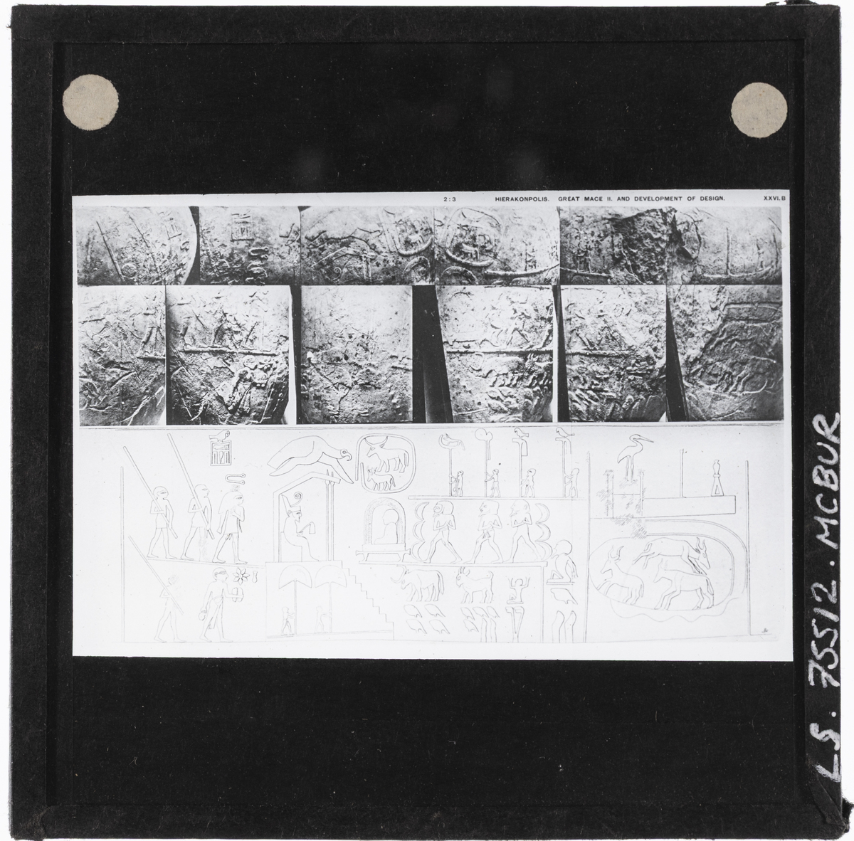 Publication: Same image published in Quibell, James Edward, 1900. 'Hierakonpolis (Band 1): Plates of discoveries in 1898 — London, 1900', and captioned: "Narmer Macehead Quibell." [JD 24/01/2026]