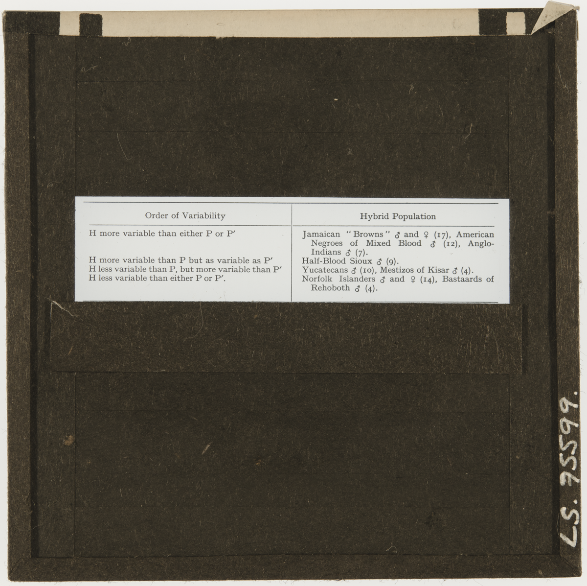 Chart giving 'Order of Variability' of differing ethnic groups. [JD 23/05/2017]