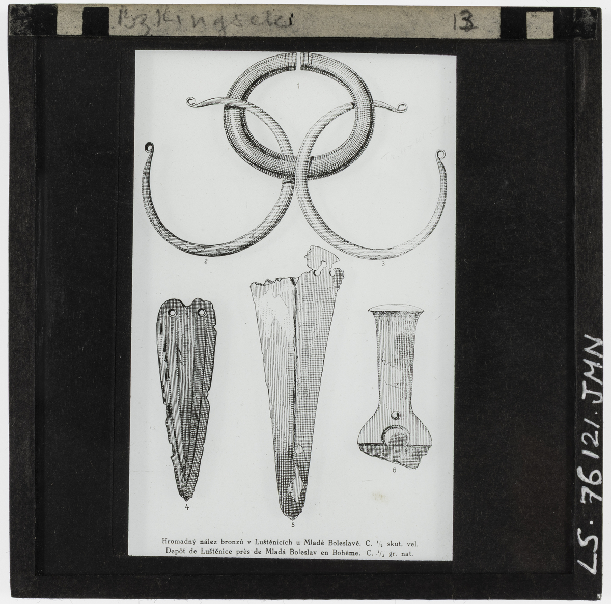 Documentary drawings of "A massive find of bronze in Luštěnice near Mladá Boleslav. C. ', actual size.