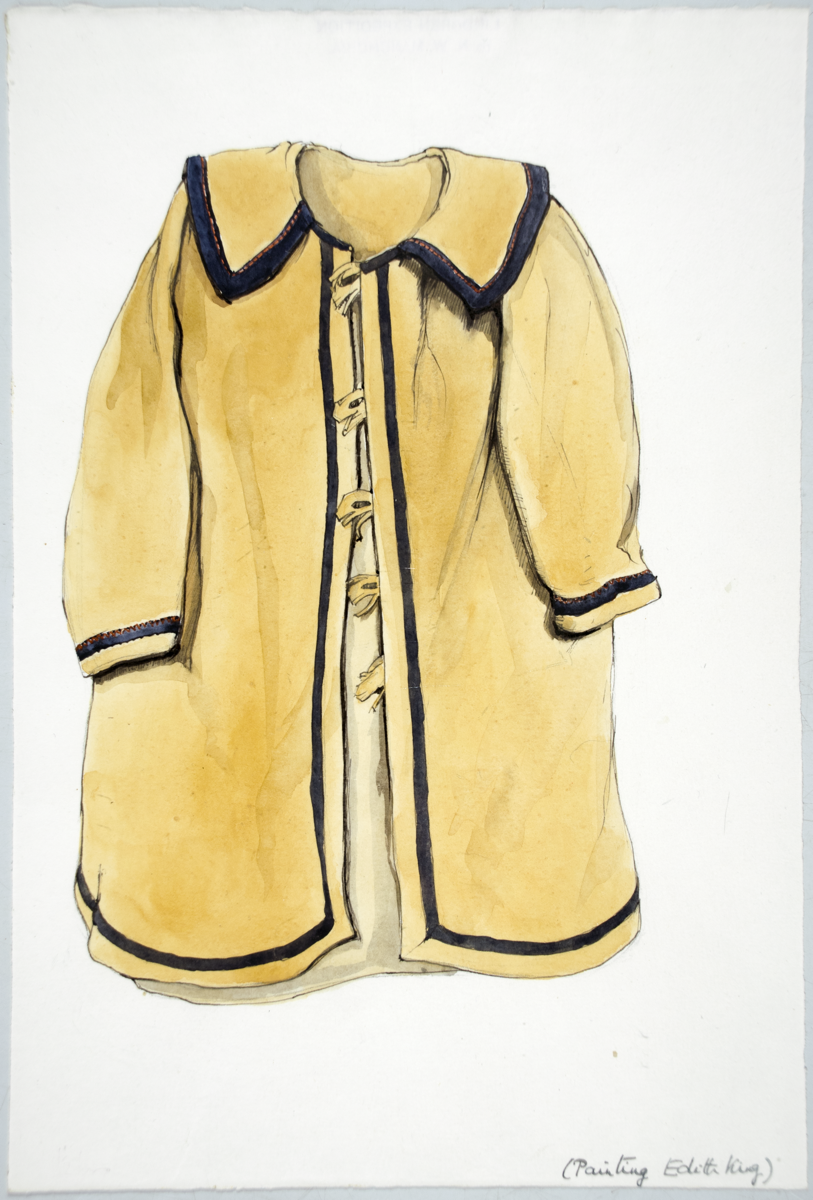 The Nayama is now in the care of MAA, reference 1935.777, and described as: "Nayama. Long women’s coat made from wapiti or elk skin. Front opening with long sleeves and deep collar. Collar, cuffs and outer edge trimmed with band of dark brown fabric, possibly cotton. Five leather fastenings with fringe trim along front. Dyed with bark of dulgikte tree mixed with Juniper ashes. Stitched closed at collar.