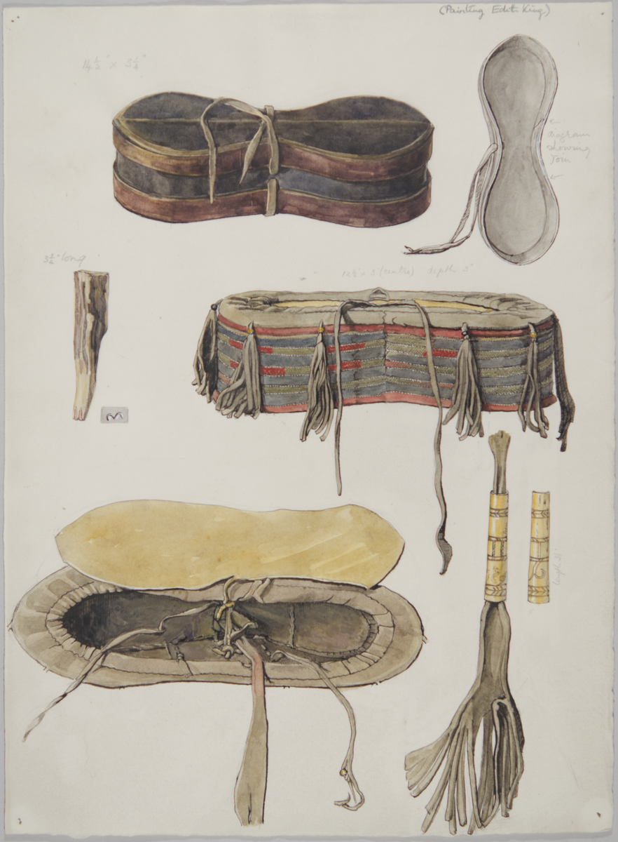 Paintings and drawings of Mongolian artefacts.
