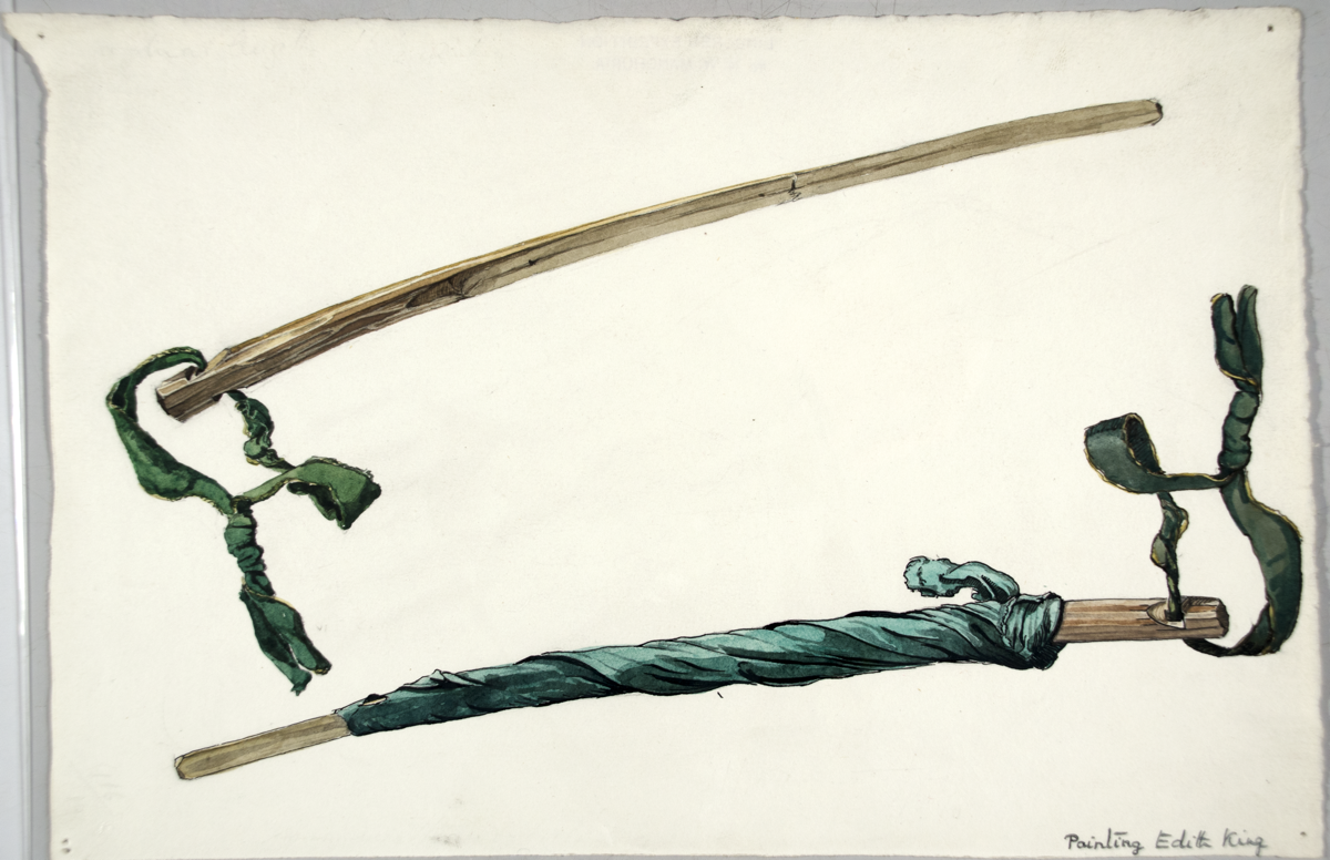 Paintings and drawings of Mongolian artefacts- covered stick.