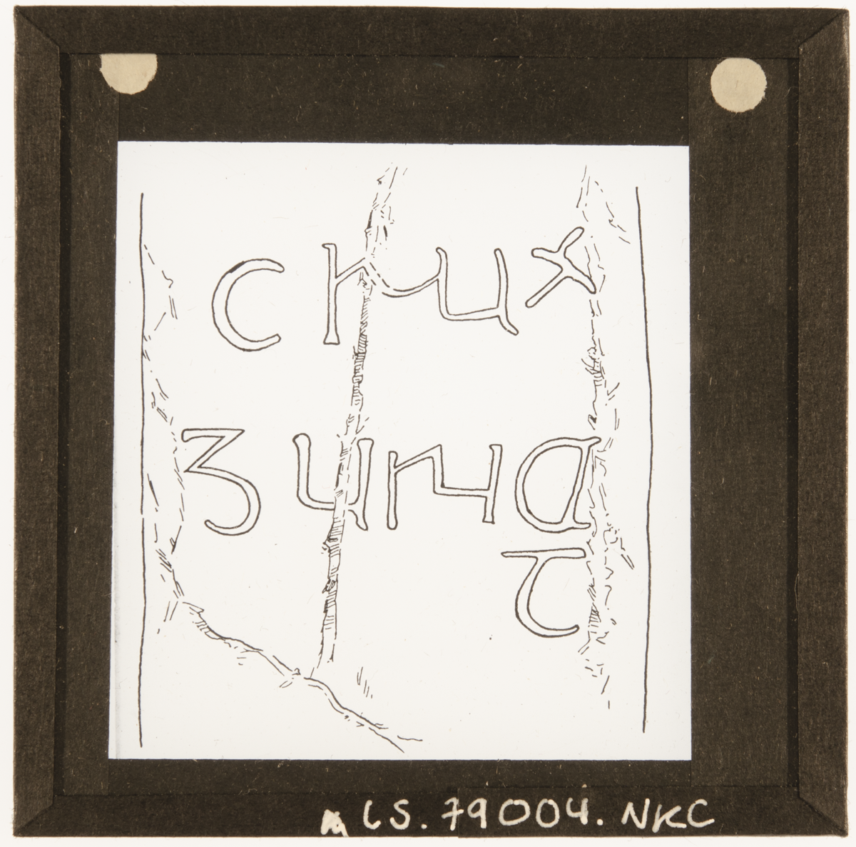 Drawing of the inscription in Hiberno-Saxon reading 'Crux Guriat' on the 9th century Crux Guriat Cross at Kirk Maughold, Isle of Man. [JD 18/08/2022]