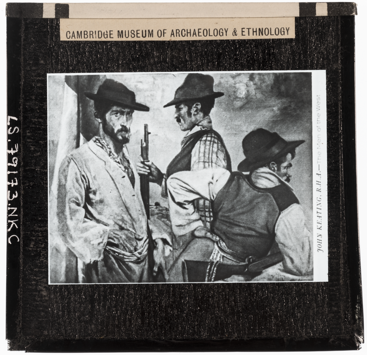Biographical Information: John Keating was born in Limerick on 28 September 1889 and known as a portrait and figure painter. He has made a study of West of Ireland types, and his figures, painted in flat tones, have a vivid sense of personality. 'The Men of the West 'appeared in the RHA in 1917 and the artist later presented it to the Municipal Gallery of Modern Art. [Source: www.thekennygallery.ie/artists/keatingsean/, JD 19/2/2010]