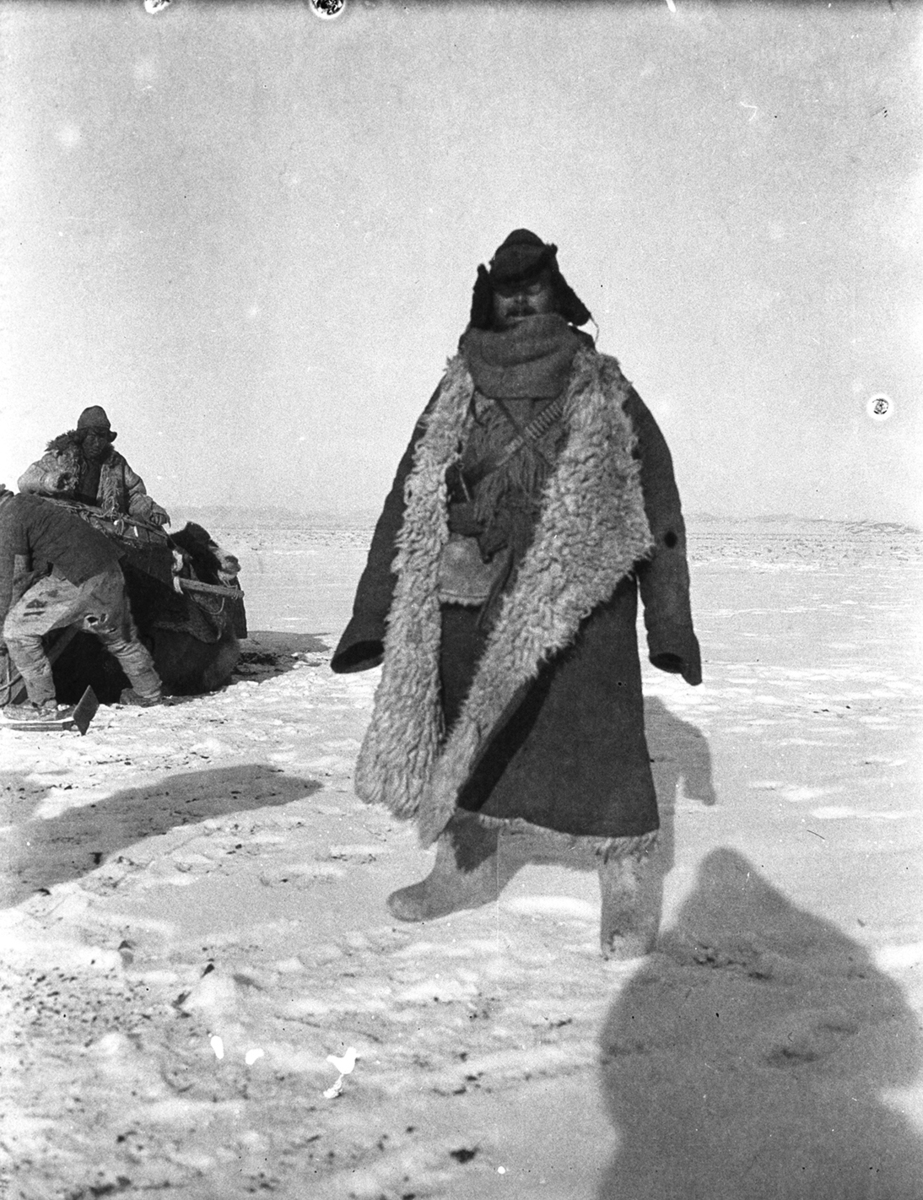 O.L. [Owen Lattimore] winter costume, near Kuch'eng-tze; The author in winter costume from HT p 18