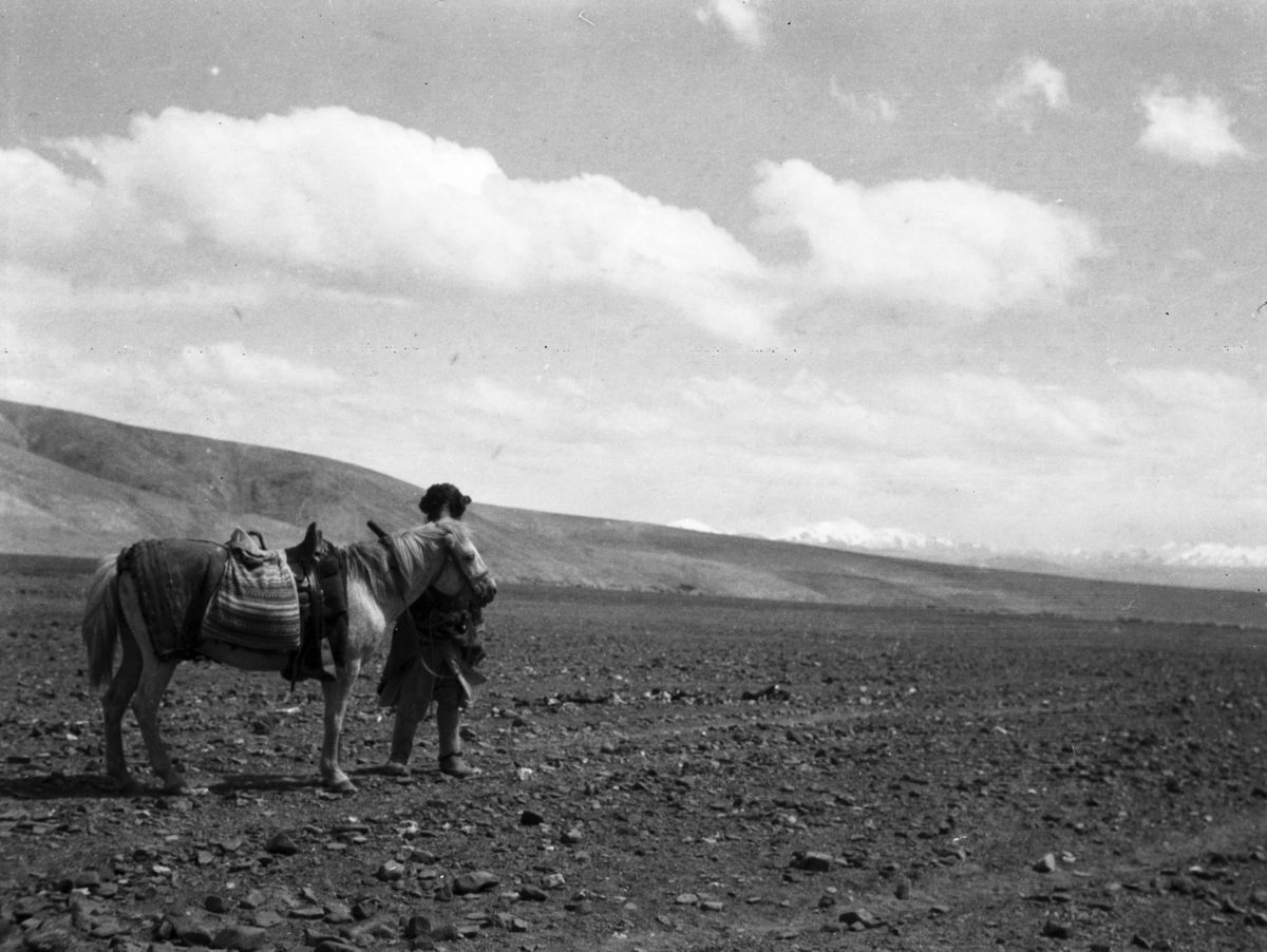 Near Qum Bulaq: Tashi (Senengh) and pony (horse)