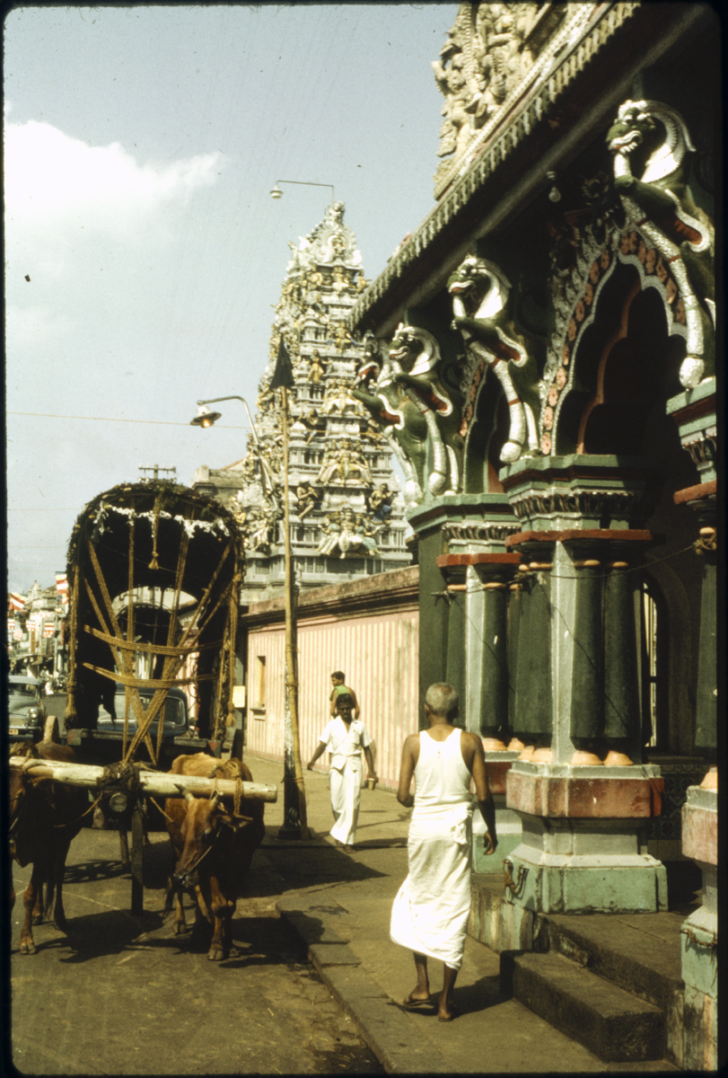 A street scene with the Temple of Sri Kailawasanathan Swami Devasthanam Kovil in Colombo, in the background. [JD 01/12/2025]