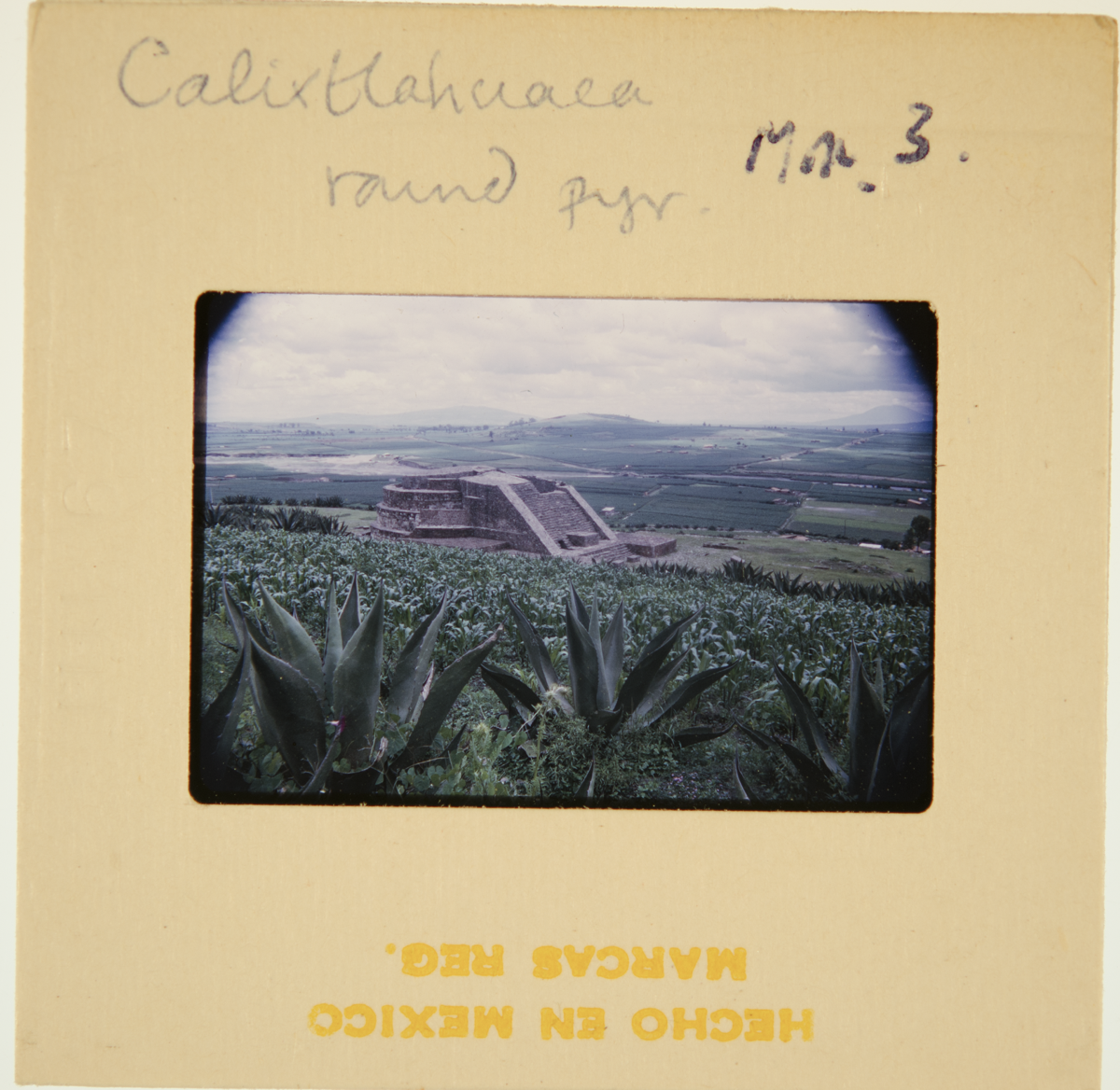 Distant view of the round pyramid of Calixtlahuaca near the present day city of Toluca. [TB 20/4/2015]