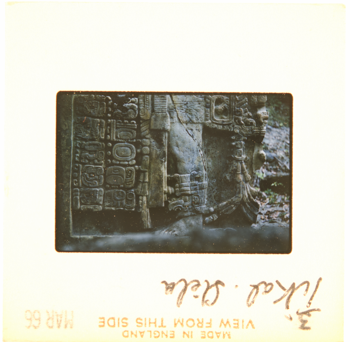 Detail of a Stela 21 in Tikal, situated at the foot of the Temple of the Inscriptions (Temple VI). It records the succession of Yik'in Chan K'awiil in AD 734. [LG 27/11/2024]
