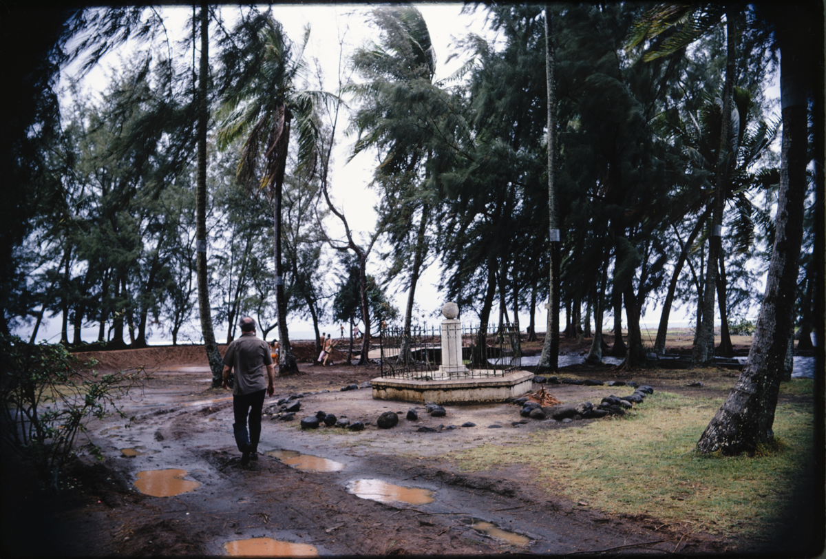 Stone memorialising Captain Cook at Point Venus in Mahina, Matavai Bay, Tahiti. Cook anchored in here 1769 in order to observe the transit of Venus.