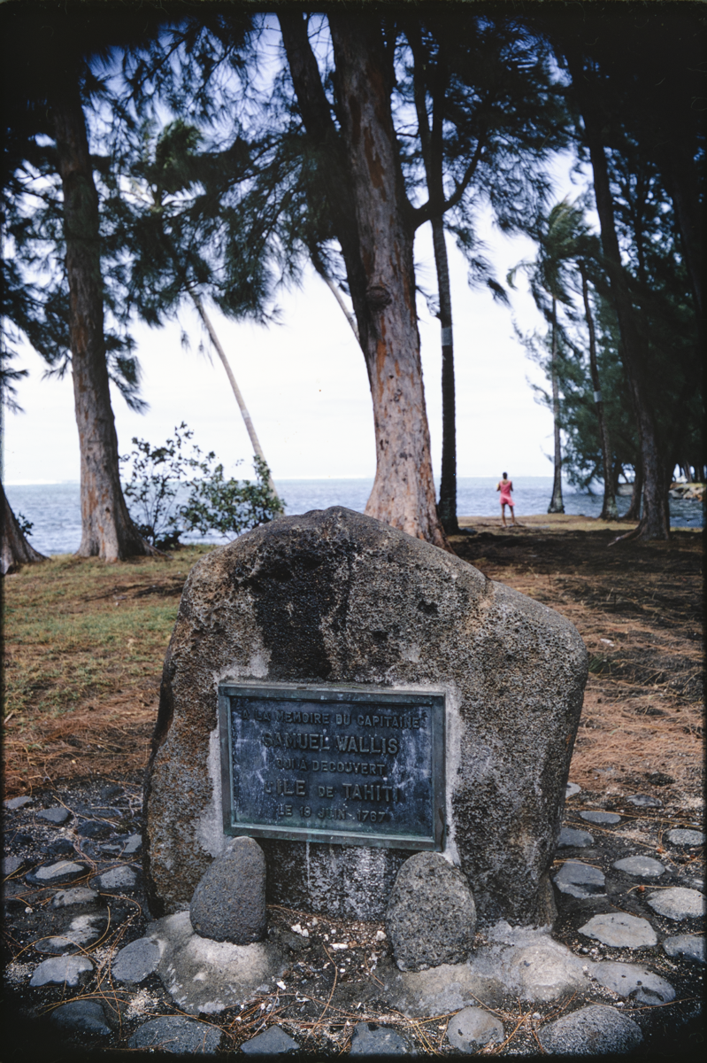 Place: Point Venus is a peninsula on the north coast of Tahiti, and is where Captain James Cook anchored to observe the 1769 Transit of Venus from the South Pacific. Samuel Wallis, whose stone memorial is shown here, was a British naval officer who made the first recorded visit by a European navigator to Tahiti on the HMS Dolphin in 1767. Following his return to England, Wallis informed James Cook about Tahiti, who was due to depart shortly for the Pacific, and some of the crew from the Dolphin sailed with Cook. [Source: https://en.wikipedia.org/wiki/Samuel_Wallis, CO 22/06/2021]