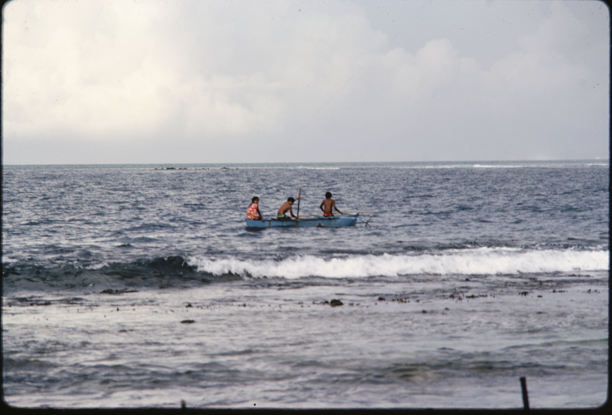 Bibliographical reference: Poignant, A. and Poignant, R. 1976. Children of Oropiro. London: Angus and Robertson, p.18-19. This extract is from a children's book about children named Eti, Timi, and Sylviane and their life in Raiatea: "The friends had not gone far before they came upon a canoe drawn up on the beach.