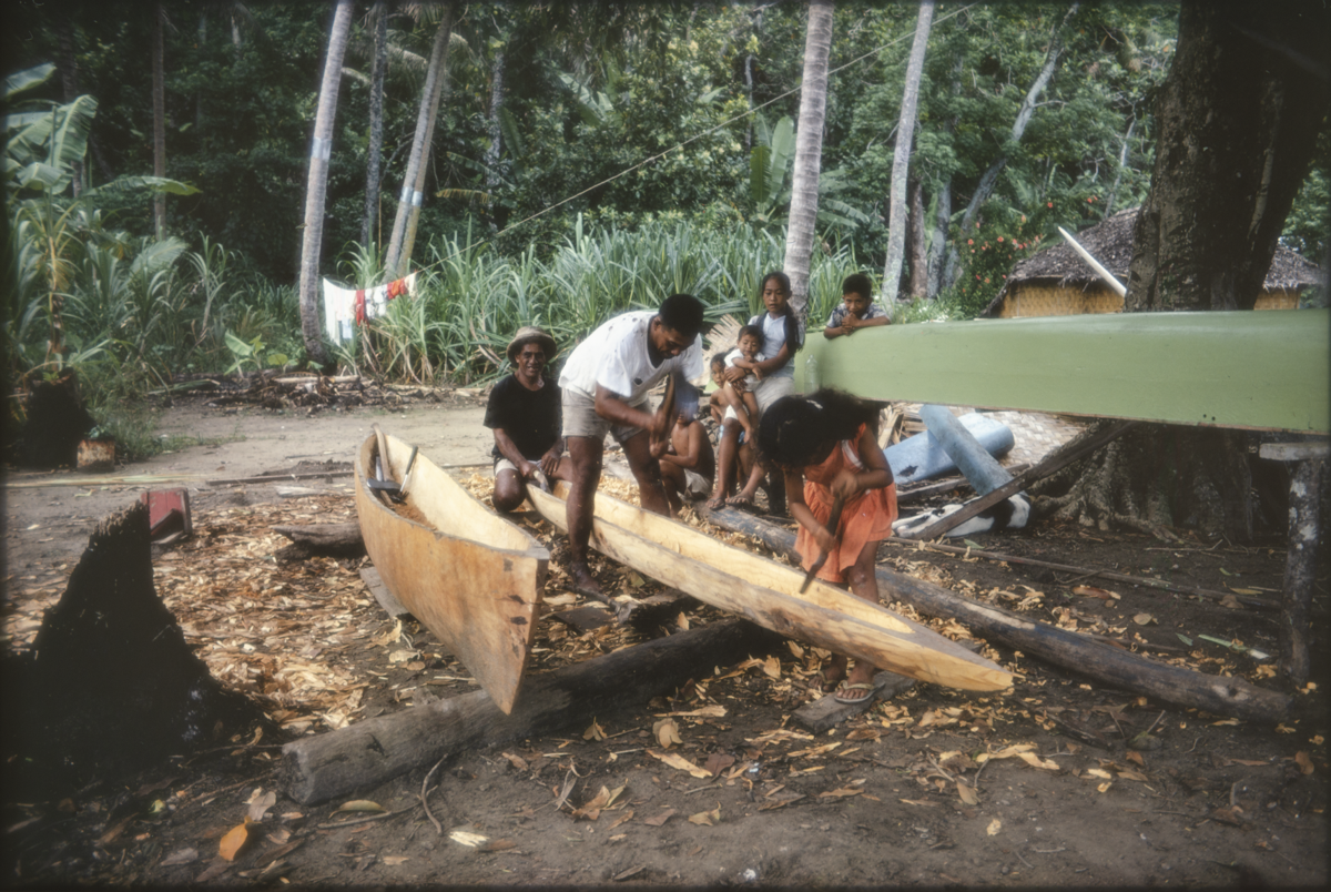 24. boat building - making a dugout canoe." [Poignant's manuscript]