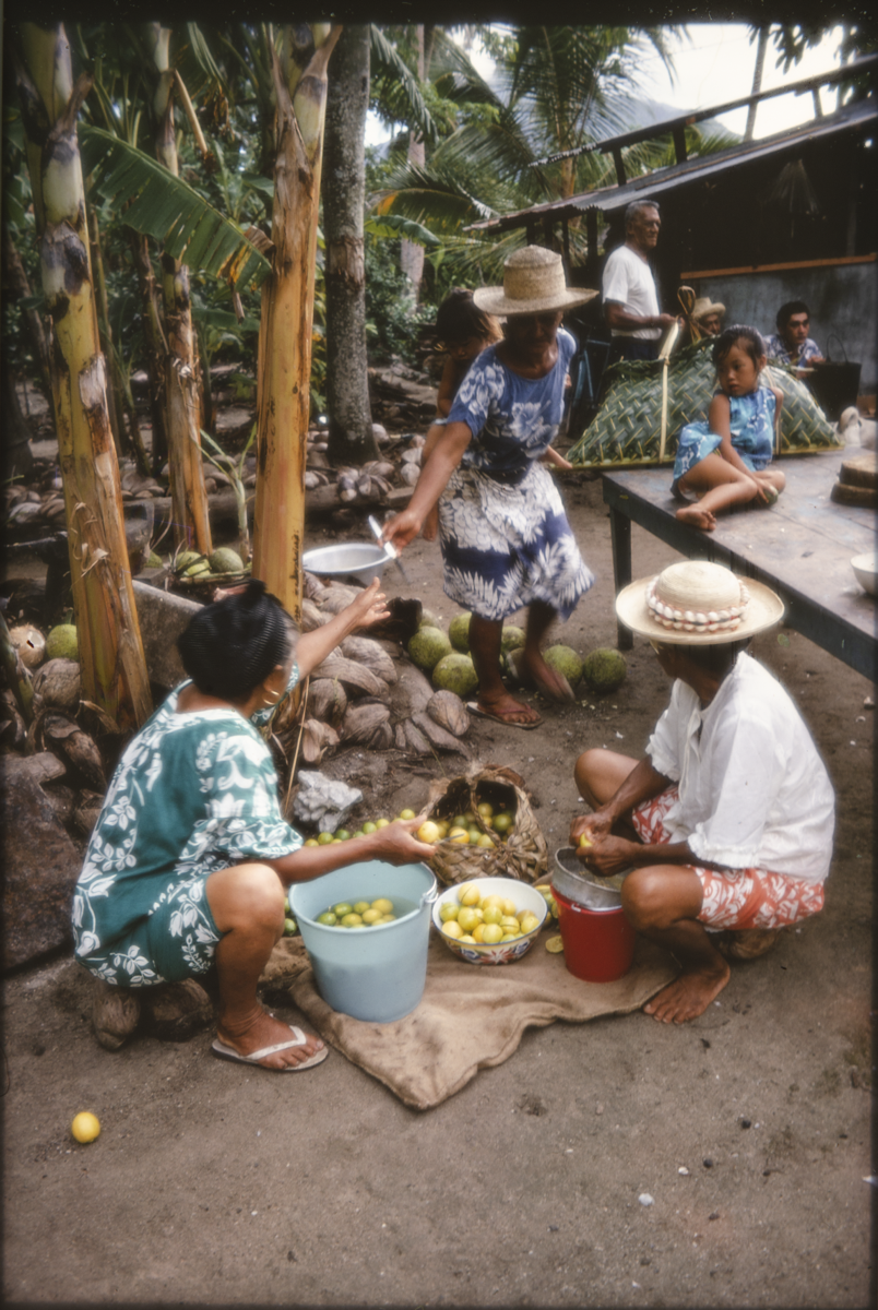 On Catalogue Card: "S.P. 32. Raiatea. Feast, Gardens, Breadfruit. 35mm.