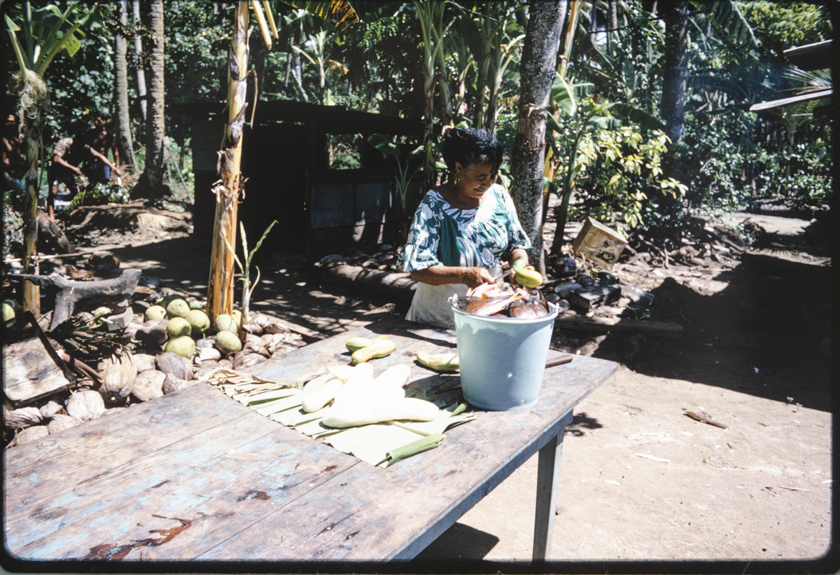 On Catalogue Card: "S.P. 32. Raiatea. Feast, Gardens, Breadfruit. 35mm.