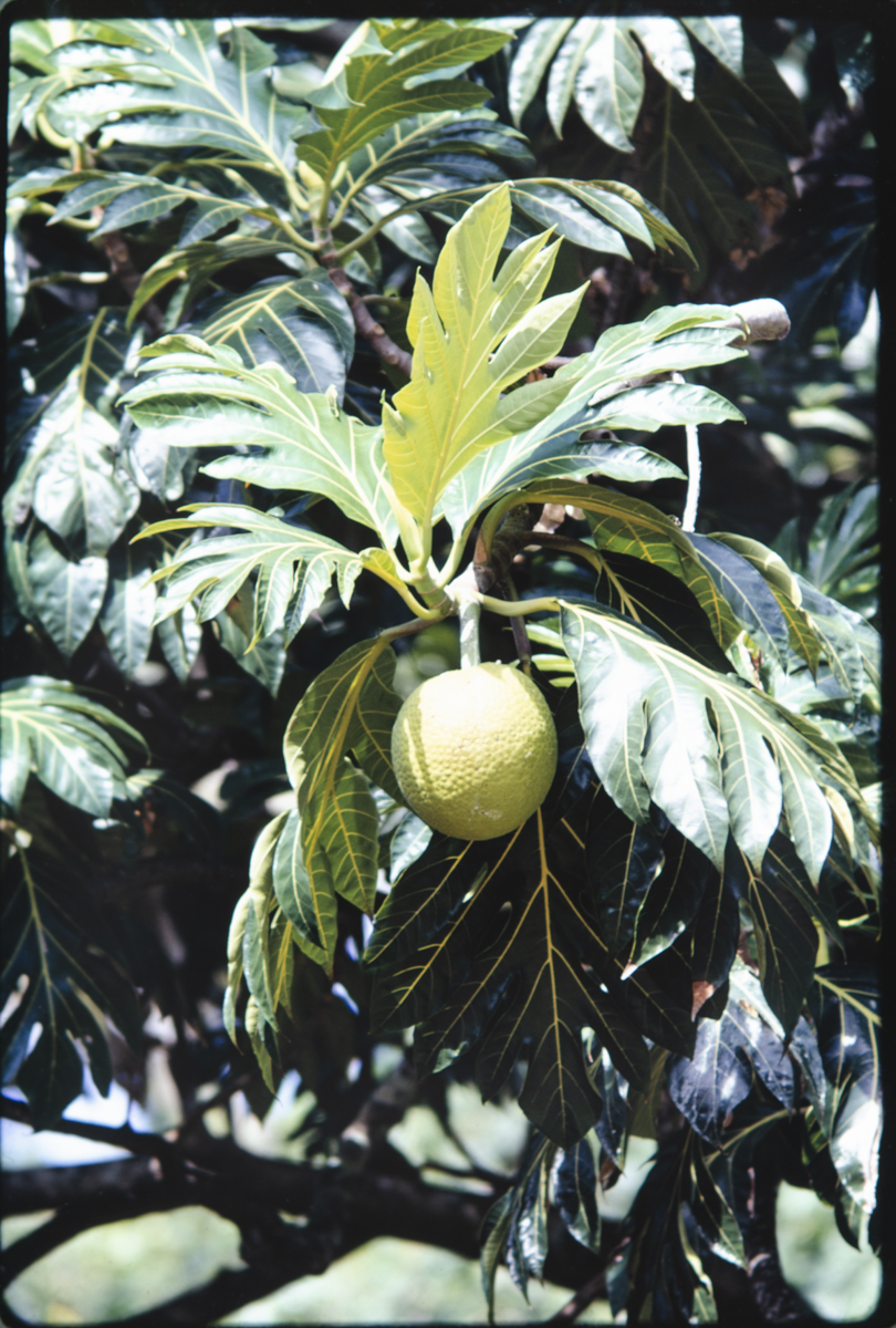 On Catalogue Card: "S.P. 32. Raiatea. Feast, Gardens, Breadfruit. 35mm.