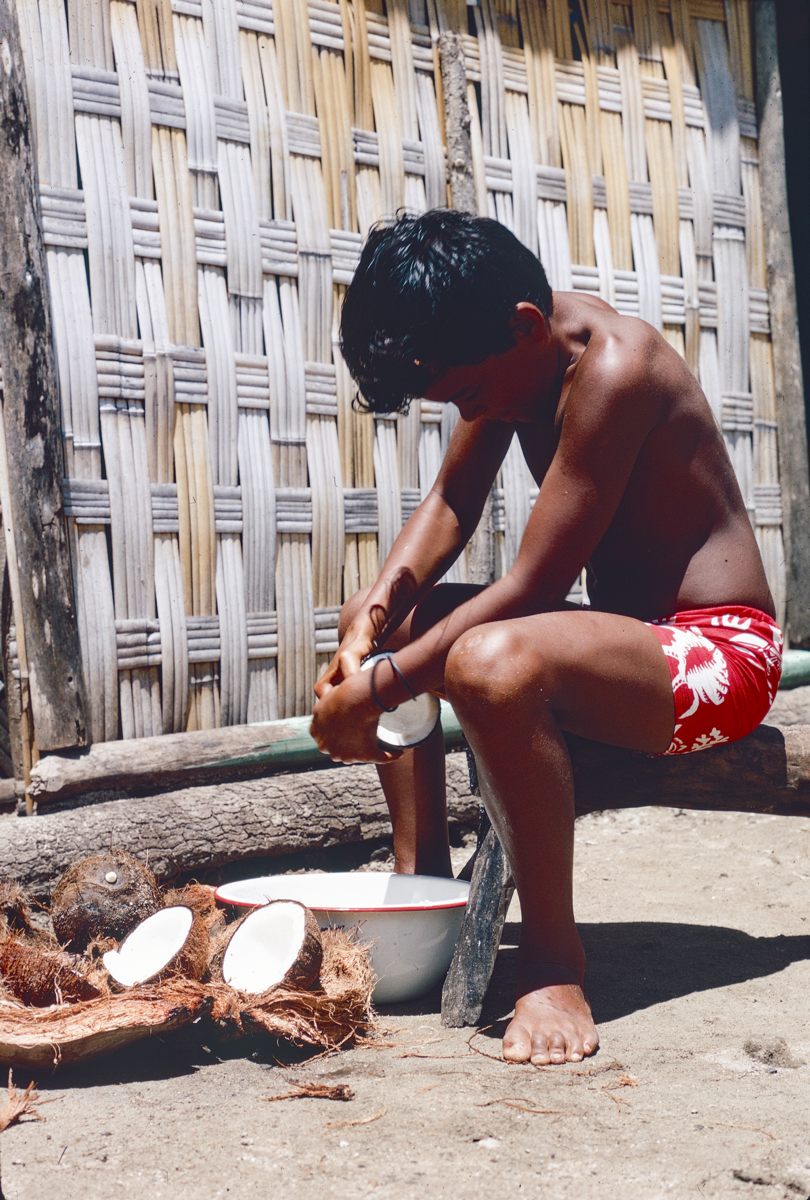 29. Eti grates coconut and makes coconut cream." [Poignant's manuscript]