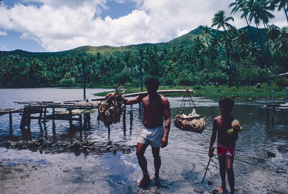 3. Ro'o and Eti return from garden with produce over shoulder." [Poignant's manuscript]