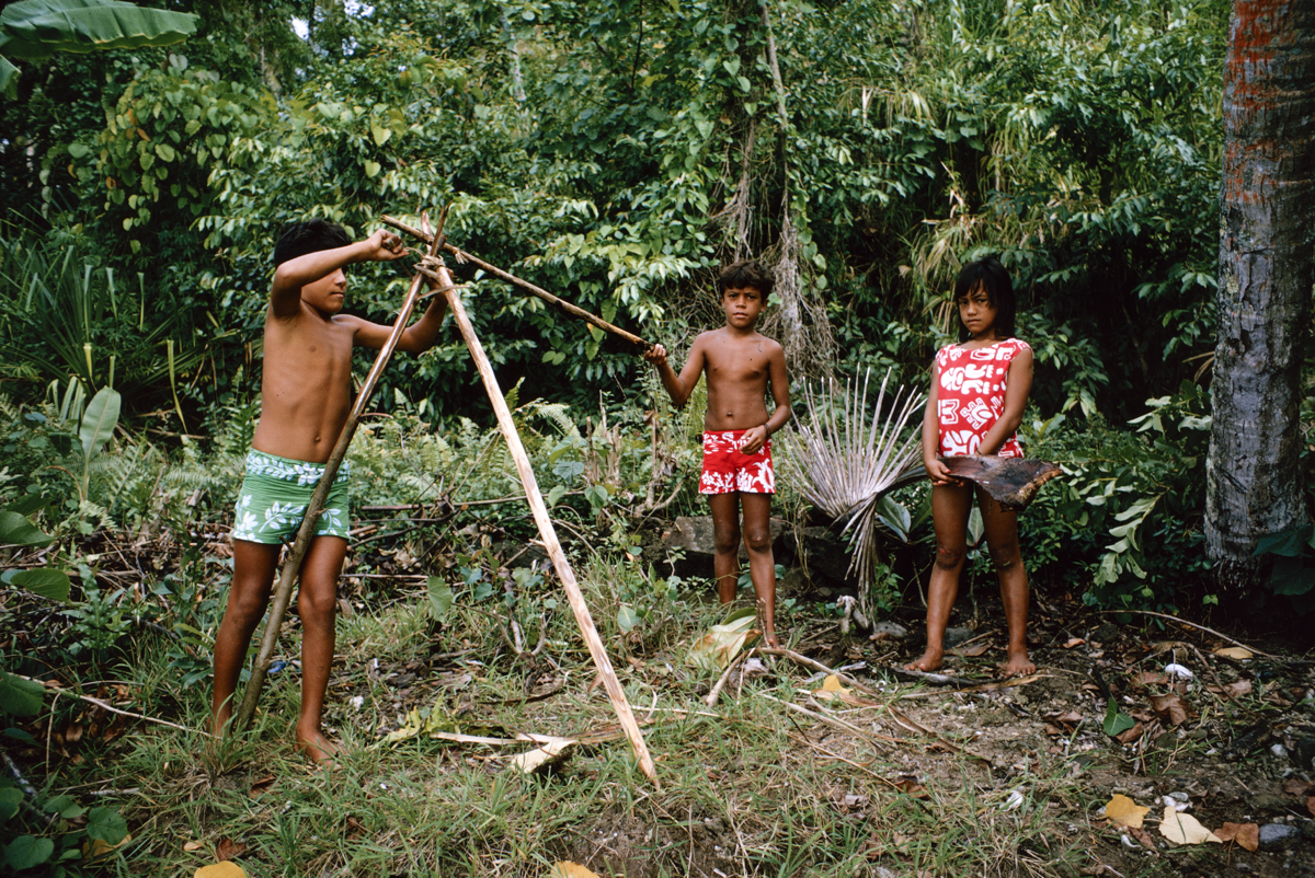 22. sequence of children biulding [sic. building] rough shelter of coconut leaves etc." [Poignant's manuscript]