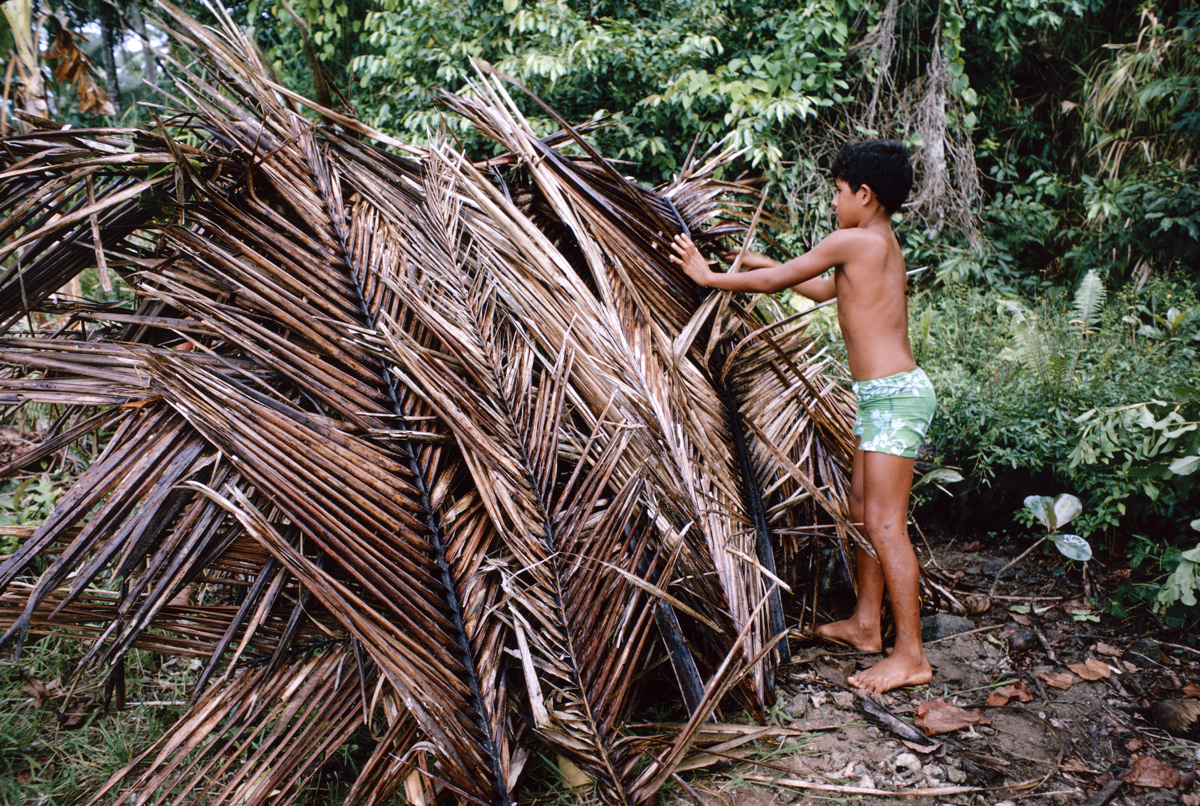 31. sequence of children biulding [sic. building] rough shelter of coconut leaves etc." [Poignant's manuscript]