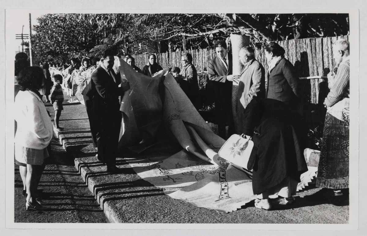 Biographical reference: "Te Arikinui, Dame Te Atairangikaahu [1931 - 2006] was the first woman chosen to lead the Kīngitanga (the Māori king movement). She served as Māori queen for over 40 years, the longest reign of any Māori monarch. Te Atairangikaahu came to enjoy a national profile, embodying Māori identity and symbolising Māori mana at a time when Māori were increasingly asserting their language, culture and rights under the Treaty of Waitangi." [source: Rāhui Papa and Paul Meredith. 'Te Atairangikaahu Korokī Te Rata Mahuta Tāwhiao Pōtatau Te Wherowhero', Dictionary of New Zealand Biography, first published in 2018. Te Ara - the Encyclopedia of New Zealand, https://teara.govt.nz/en/biographies/6t4/te-atairangikaahu-koroki-te-rata-mahuta-tawhiao-potatau-te-wherowhero KK 28/10/2022]