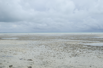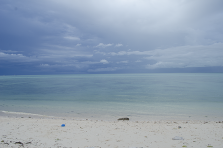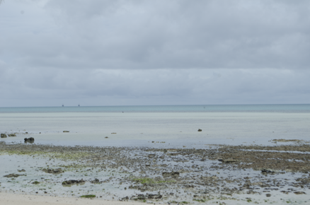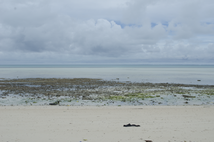 View of a beach, the lagoon can be seen in the background.
