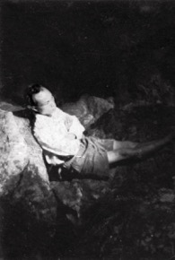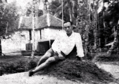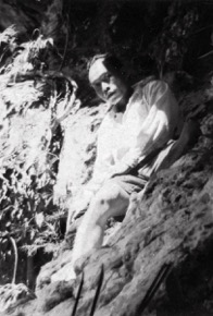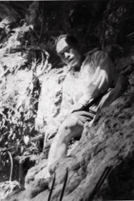 Portrait of Paka anak Otor leaning against a ?limestone cav…