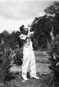 Paka anak Otor, wearing a short-sleeved shirt and shorts, s…