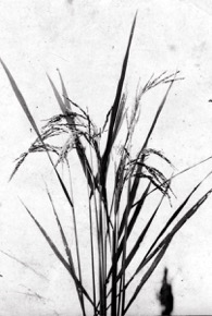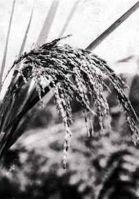 Close-up photograph of a clump of ripening hill paddy growi…
