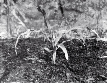 Close-up photograph of a young plant with long thin leaves …