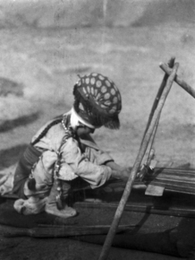 Below Sanju Dawan (Davan): Kirghiz girl weaving; The loom w…