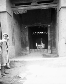 Summit of Toksun mosque; entrance of a mosque; two muslim m…