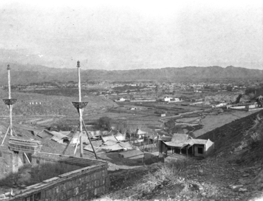Urumchi [Urumqi], from temple on hill; two large towers wit…