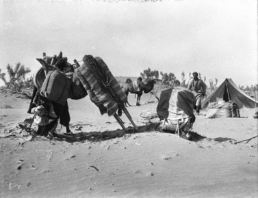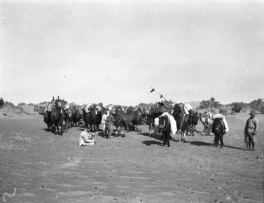 The great dunes: halt on march; in desert