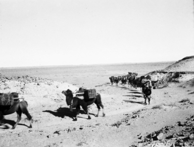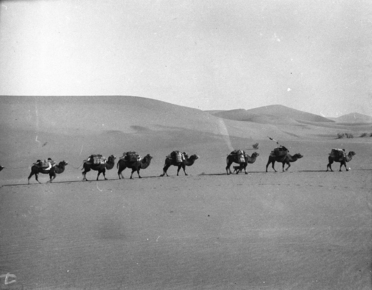 The great dunes: on march, Moses, old Man; camel caravan in…