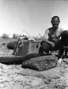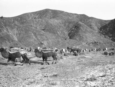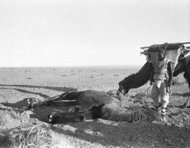 Young Li with dead and living camel: Khara Gobi [Black Gobi…
