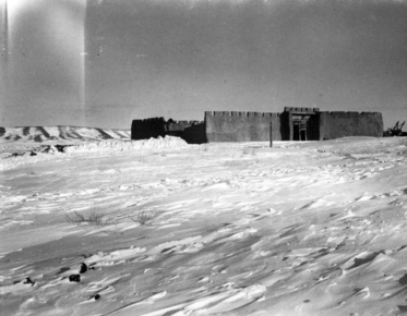 Nearing Ku Ch'eng-tze: camp, ruined inn; tent set up in sno…