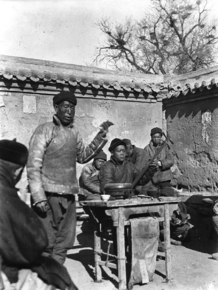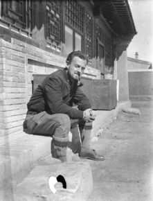 Self-portrait with pipe (presumably in Hohhot); O.L. sittin…