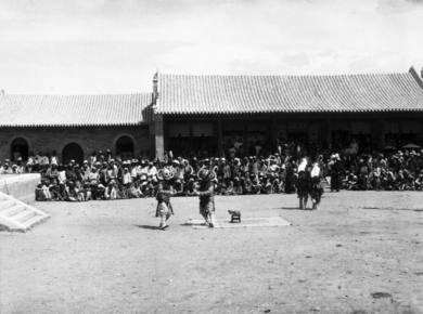Ballad singer, temple fair, Kuei-hua [Hohhot]; man playing …