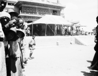 Chao Ho, devil-dance, lamas at temple gate