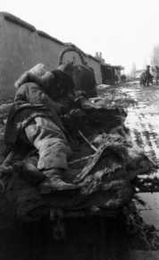 Kazak (Qazaq) [lying] on sledge